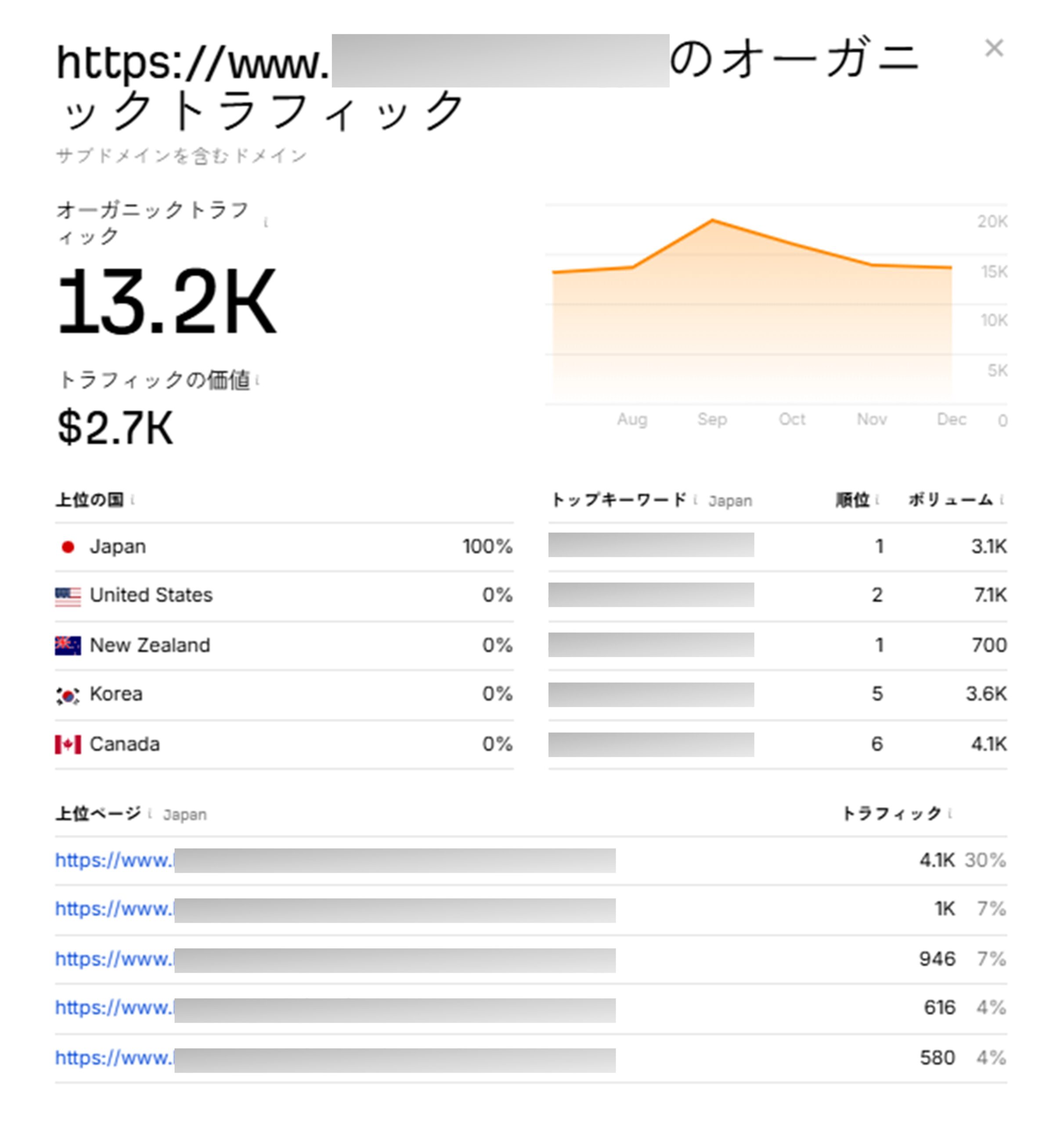 競合のURLを入力するだけで以下の情報を得られます。