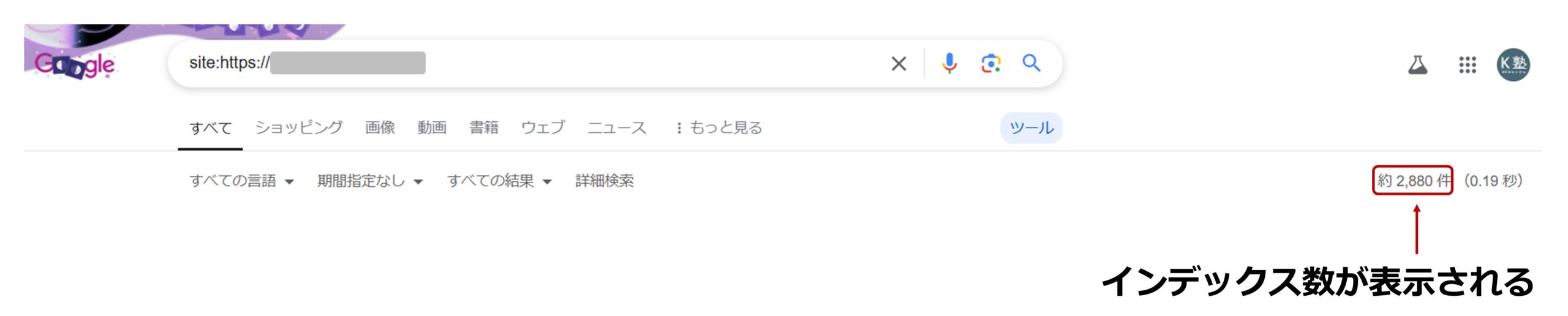 サイト単位のリサーチ項目の3つ目はインデックス数です。